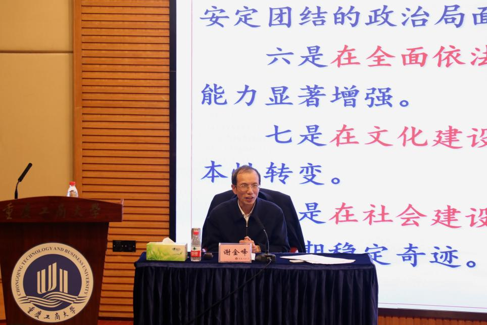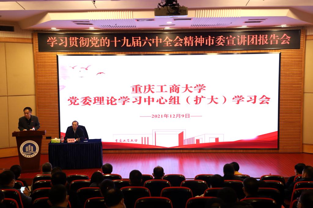12月9日下午,pp电子召开党委理论学习中心组(扩大)学习会,深入学习贯彻党的十九届六中全会精神。市委宣讲团成员、市委党校(重庆行政学院)常务副校(院)长谢金峰同志为pp电子师生作专题辅导报告。校党委书记李志雄主持会议并讲话。