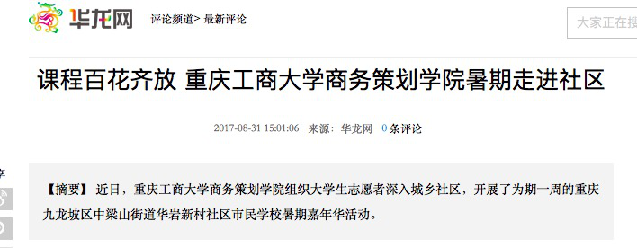 暑期两月,商务策划学院三下乡暑期实践社会队响应全国大中专学生志愿者暑期文化科技卫生“三下乡”社会实践活动号召,前往重庆多地,以理论结合实践,助力科技发展为目标;结合自身专业特色,以科技服务社会为目标,深入城乡社区,展开一系列助农、助教、调研农村电商发展等活动。实践期间,队员们结合工作实际,落实调研任务,虚心学习,悉心授课,最终团队取得了优异成果!而与此同时,该实践队的突出表现也受到了社会各界媒体的广泛关注和报道。