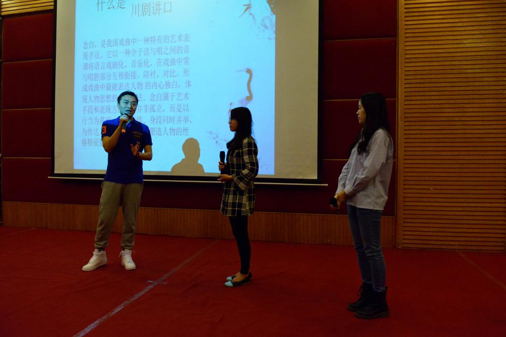 “五四”青年节前夕,由pp电子游戏平台网站经济学院主办的“传统文化进校园,别样五四话戏曲”活动在7200会场隆重举行。重庆市川剧院青年艺术家张严威老师以风趣幽默的体验式讲座形式带领现场近200名师生就川剧五大行当、唱腔等戏曲知识进行了详细的讲解,为现场观众呈现了一场精彩纷呈的视听盛宴。出席本次活动的嘉宾还包括pp电子游戏平台网站校团委杨娟副书记,pp电子游戏平台网站经济学院分党委王小玲书记、于频副书记,以及来自文学与新闻学院、商务策划学院、法学院、会计学院、通识学院等学院的数十名资深戏曲“票友”。此次活动受到新华网、央广网、华龙网、新浪网、大渝网、重庆晚报网、中新社重庆新闻网、重庆晨报等多家主流网媒、纸媒的报道。