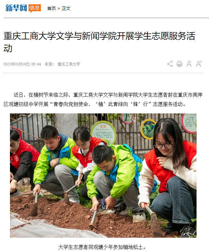 新华网报道pp电子文学与新闻学院志愿服务活动