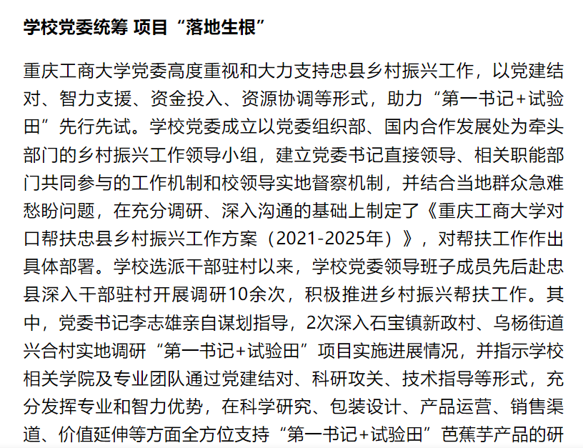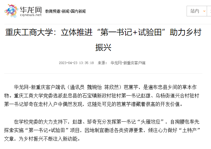 重庆党建门户七一网、华龙网刊载《pp电子游戏平台网站立体推进“第一书记+试验田”助力乡村振兴》工作情况
