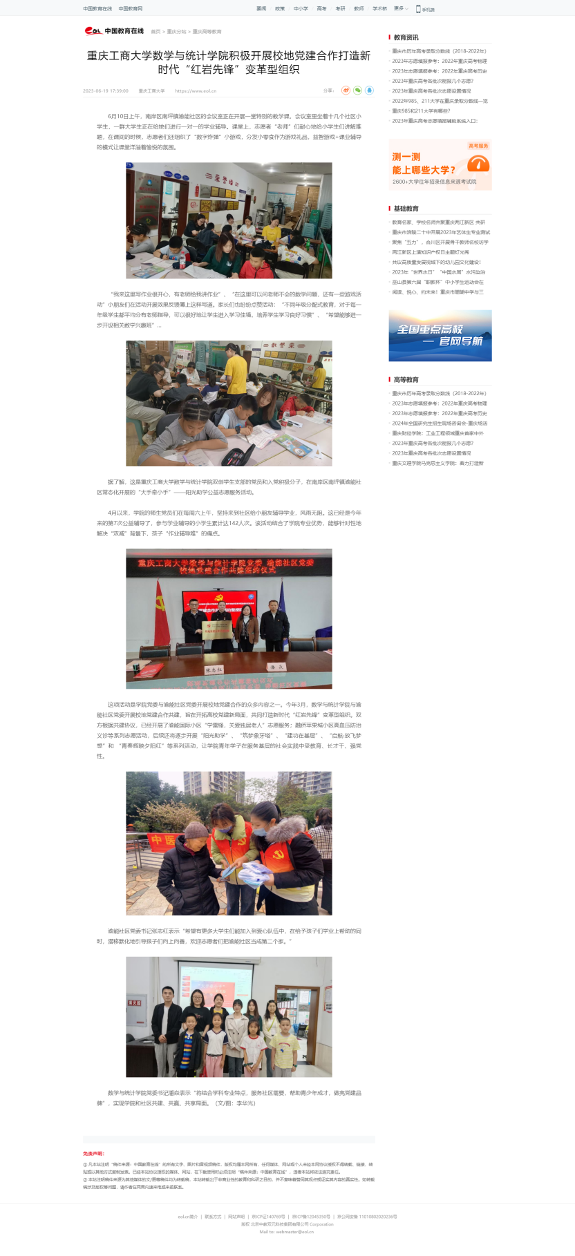 华龙网、中国教育在线、新浪网报道pp电子数学与统计学院积极开展校地党建合作打造新时代“红岩先锋” 变革型组织