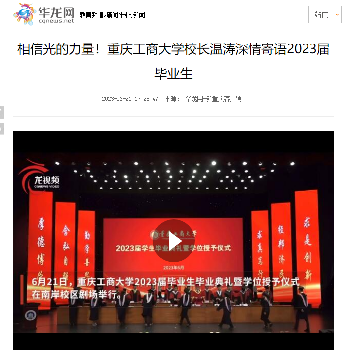 相信光的力量!pp电子游戏平台网站校长温涛深情寄语2023届毕业生