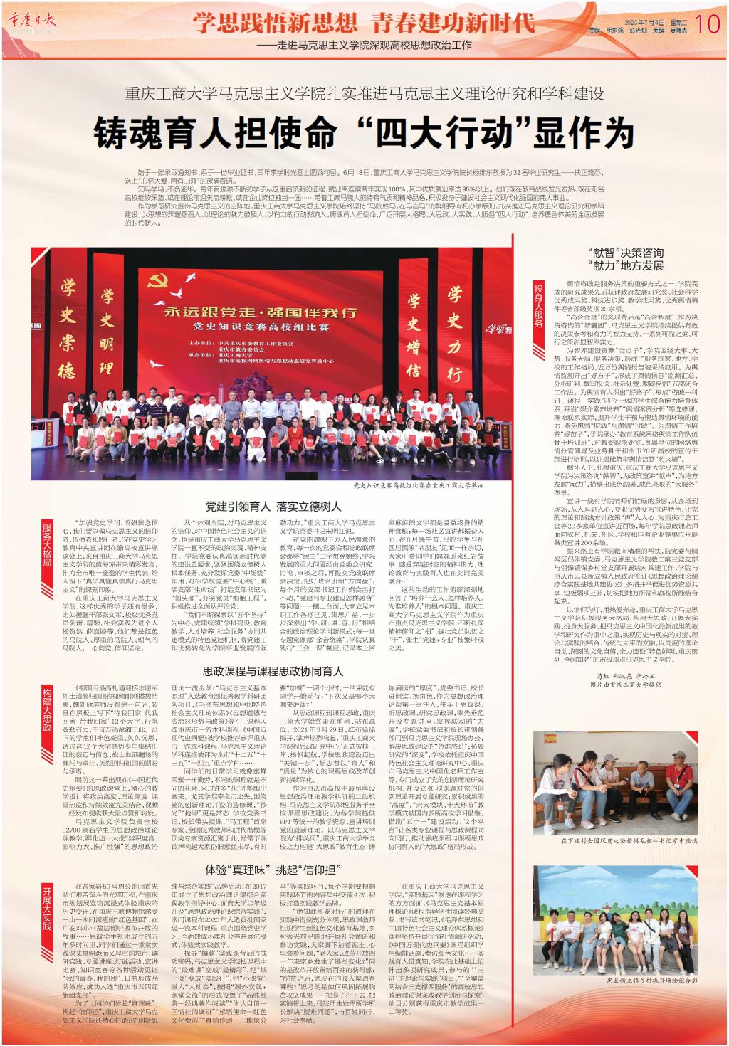 重庆日报整版报道pp电子马克思主义学院扎实推进马克思主义理论研究和学科建设