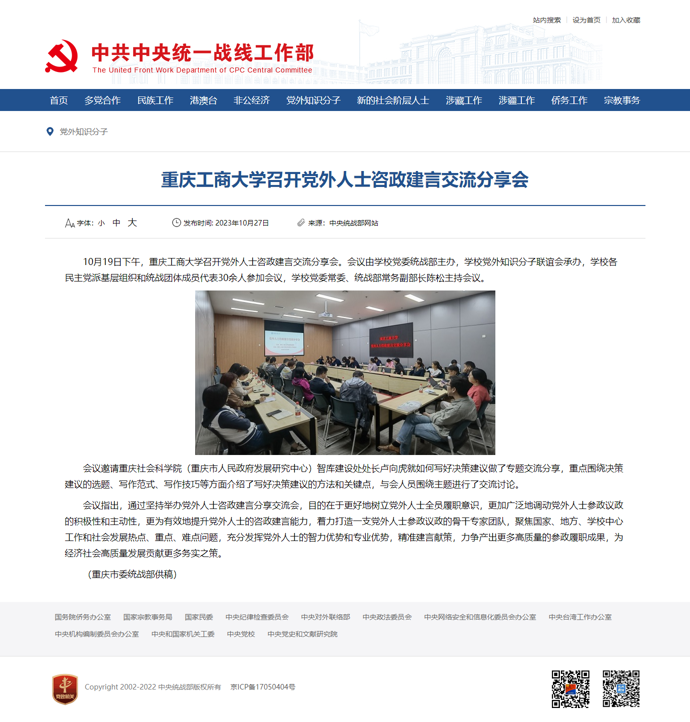 中央统战部网站报道pp电子召开党外人士咨政建言交流分享会