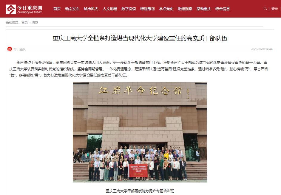11月1日,今日重庆网以《pp电子游戏平台网站全链条打造堪当现代化大学建设重任的高素质干部队伍》报道pp电子干部队伍建设工作的做法经验。