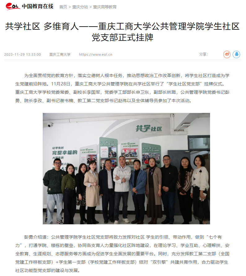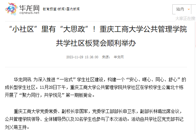 华龙网、中国教育在线报道pp电子“一站式”学生社区党建工作