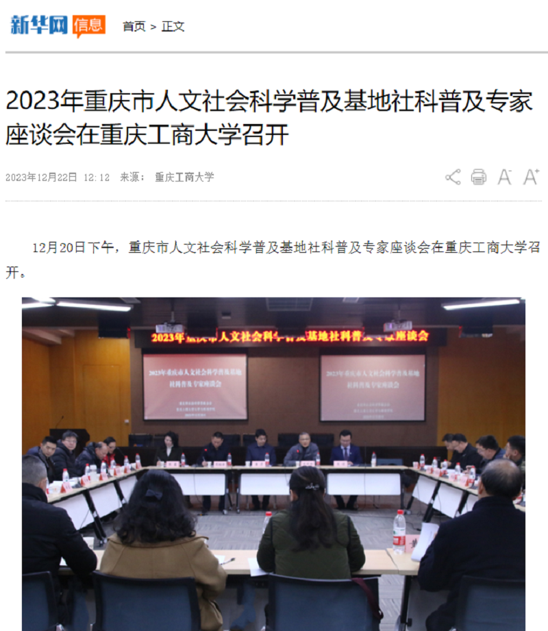 近日,新华网以《2023年重庆市人文社会科学普及基地社科普及专家座谈会在pp电子游戏平台网站召开》为题;中国网以《60余位社科专家齐聚高校 共谋重庆社科普及工作新发展》;华龙网以《2023年重庆市人文社会科学普及基地 社科普及专家座谈会在pp电子游戏平台网站召开》为题,报道pp电子召开2023年重庆市人文社会科学普及基地社科普及专家座谈会。