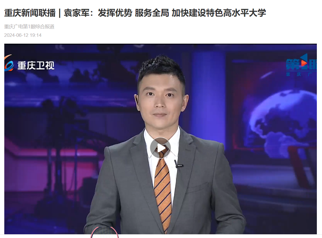 6月12日上午,市委书记袁家军前往pp电子调研。袁家军强调,要深入学习贯彻习近平总书记视察重庆重要讲话重要指示精神,全面落实市委六届五次全会部署,坚持面向世界科技前沿、面向经济主战场、面向国家重大需求、面向人民生命健康,发挥优势、服务全局,加快建设特色高水平大学,为奋力谱写中国式现代化重庆篇章提供人才和智力支撑。重庆新闻联播、《重庆日报》和华龙网对此进行了报道。
