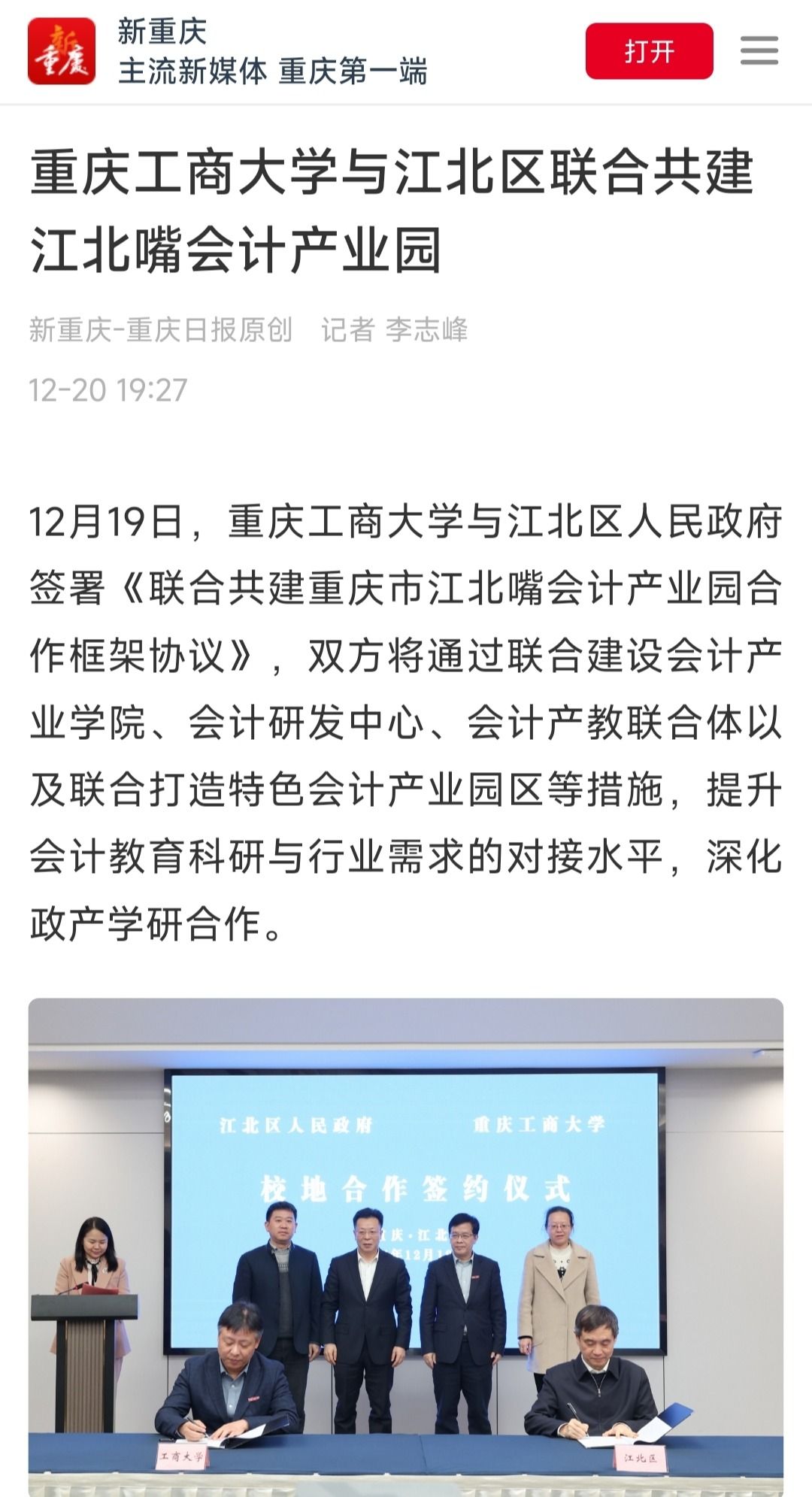 近日,pp电子与江北区人民政府签署《联合共建重庆市江北嘴会计产业园合作框架协议》,双方将通过联合建设会计产业学院、会计研发中心、会计产教联合体以及联合打造特色会计产业园区等措施,提升会计教育科研与行业需求的对接水平,深化政产学研合作。