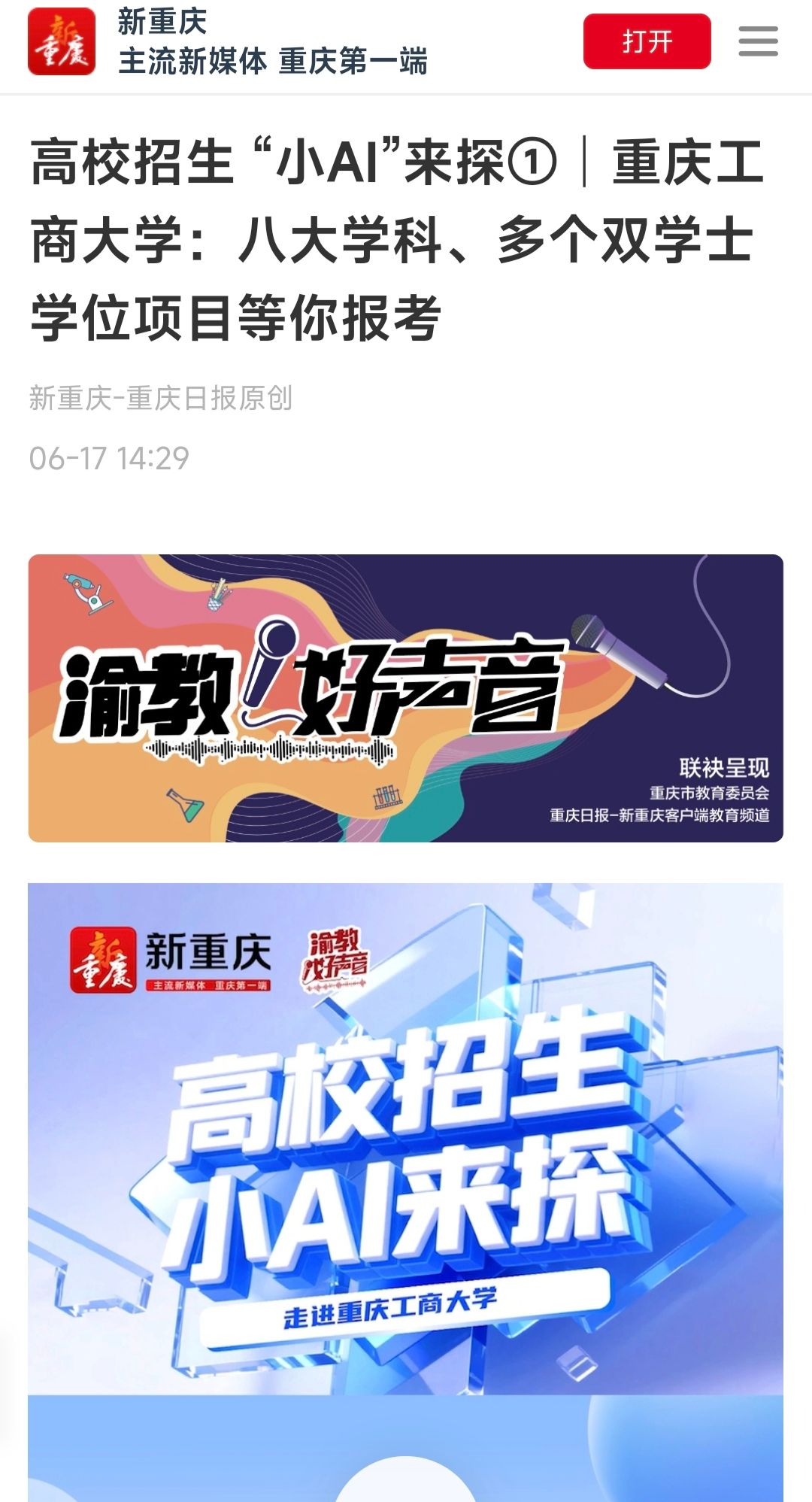 2.新重庆-重庆日报:高校招生 “小AI”来探①│pp电子游戏平台网站:八大学科、多个双学士学位项目等你报考