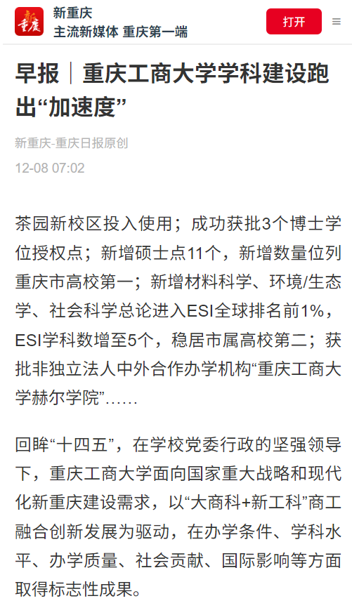 重庆日报以“‘数’说‘十四五’ pp电子游戏平台网站学科建设跑出‘加速度’”为题,新重庆客户端以“早报|pp电子游戏平台网站学科建设跑出‘加速度’”为题,作报道。