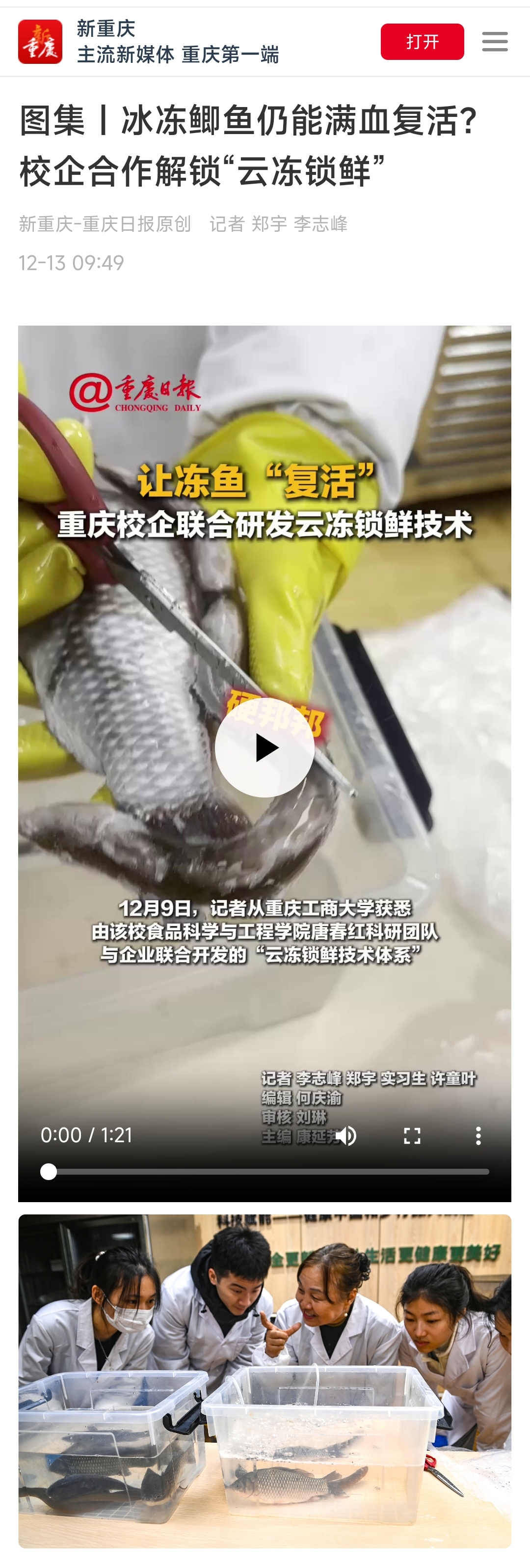 新重庆客户端以“破解保鲜难题!重庆校企联合研发“云冻锁鲜技术”,让农产品销得更远增值更多”“图集|冰冻鲫鱼仍能满血复活?校企合作解锁‘云冻锁鲜’”为题,华龙网以“突破速冻瓶颈:pp电子游戏平台网站‘云冻锁鲜技术体系’让新鲜可量化、可追溯”为题,作报道。