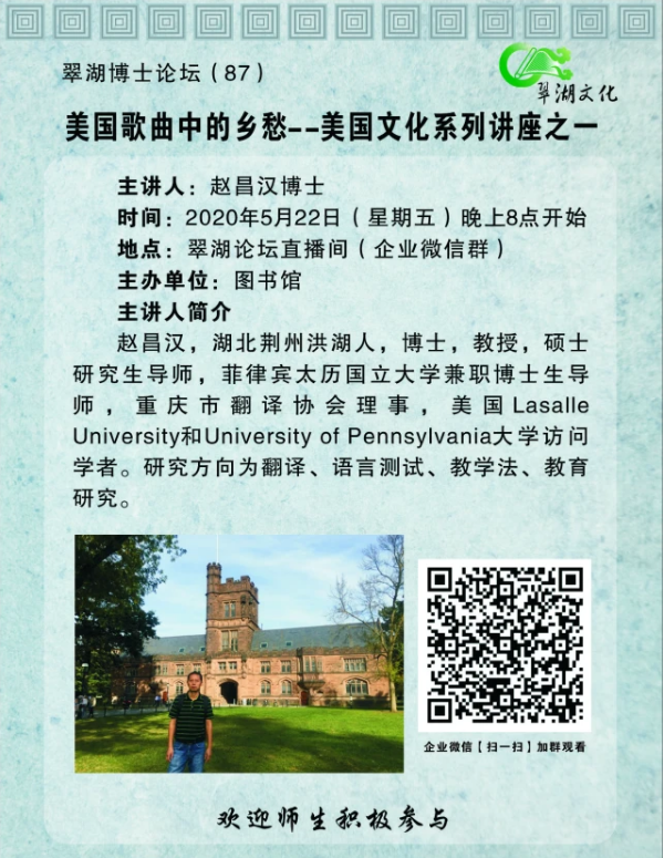 翠湖博士论坛(87)美国歌曲中的乡愁