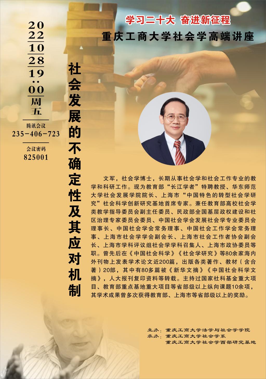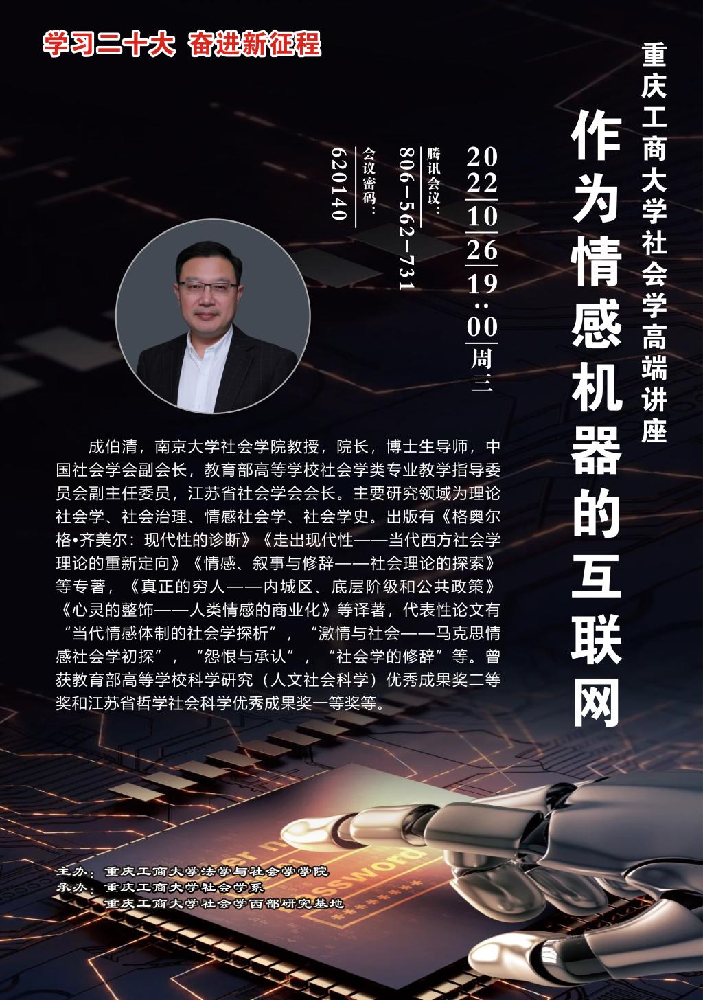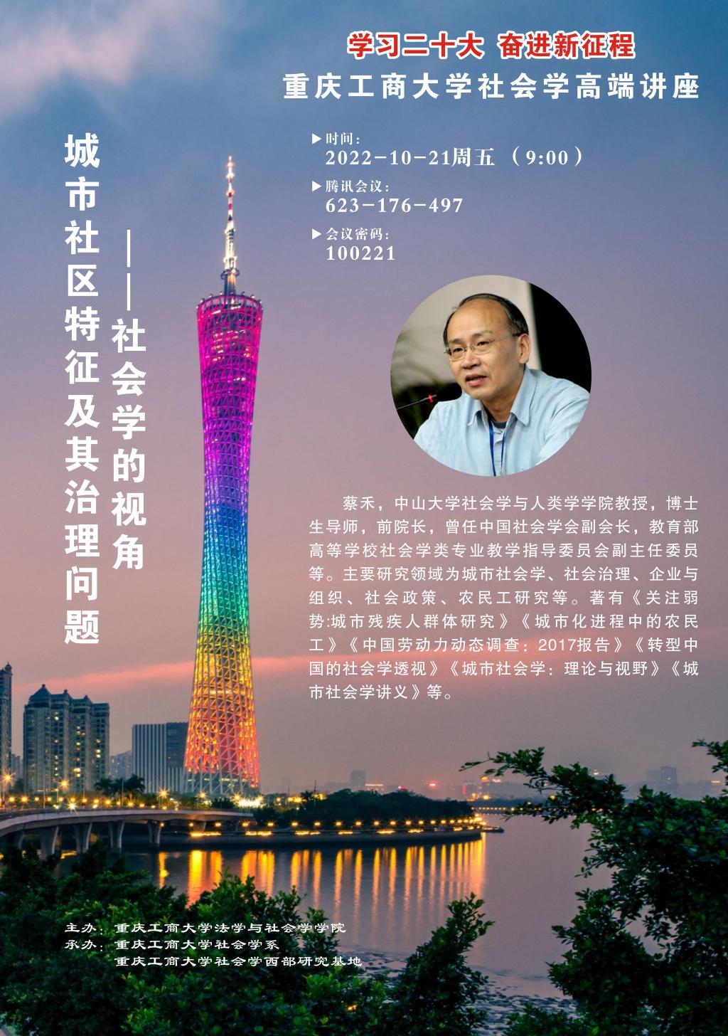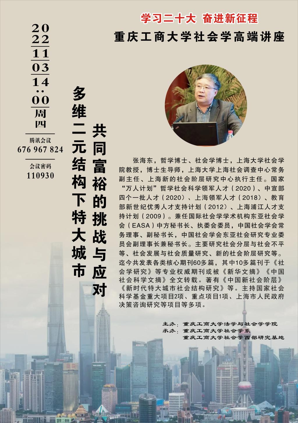 学习二十大,奋进新征程。 为推动pp电子游戏平台网站社会学重庆市“十四五”重点学科及一流专业建设,pp电子游戏平台网站社会学系、pp电子游戏平台网站社会学西部研究基地特举办社会学系列论坛。论坛为期一个月(2022.10.20-11.20),共计10场。论坛负责人:罗兆均(邮箱:545319529@qq.com)。具体安排如下:
