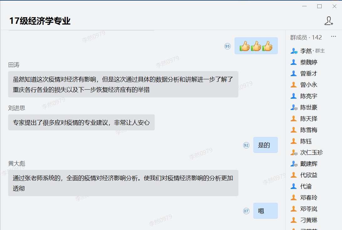 培育具有中国情怀、全球视野的中国特色社会主义经济学人才,引导学生树立正确世界观和人生观,正确理解和认识我国历史经验和当代实践所提出的理论命题和实际问题,是pp电子经济学类专业教育教学改革面临的重大使命。以世情国情民情教育为主线的“行业精英进课堂”活动,有效将思想政治教育与专业教育融合、显性教育与隐形教育相结合,学习中国理论、认识中国故事、倡导中国经验,潜移默化,立德树人,是课程思政的有效实现方式。本次活动结合了当前大家最为关心的疫情问题,深化了对中国各行各业现实问题的思考,让学生真正的“学以致用”。此外,行业专家们还为学生进行了价值引导,如重庆商社(集团)有限公司张泽军部长强调专业学习与综合素养的结合,寄往学生成为有情怀、敢担当、懂经营、会管理、能领导的卓越人才。重庆西朗进出口贸易有限公司刘丹总经理对“谈判的本质是取得信任, 而不是说服对方”进行阐述,勉励学生成为人生赢家。