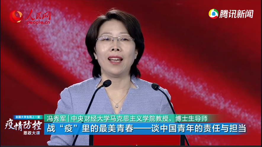 冯秀军教授以《战“疫”里最美的青春——谈中国青年的责任与担当》为题,深情讲述了这场疫情中勇敢逆行的青春风采,引导大学生群体将爱国放在首位,勇于担当历史使命,将青春梦想扎根祖国的广袤大地。