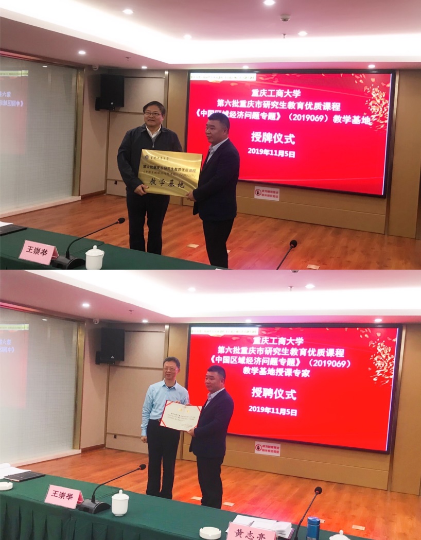 王崇举教授和黄志亮教授进行授牌及颁发聘书