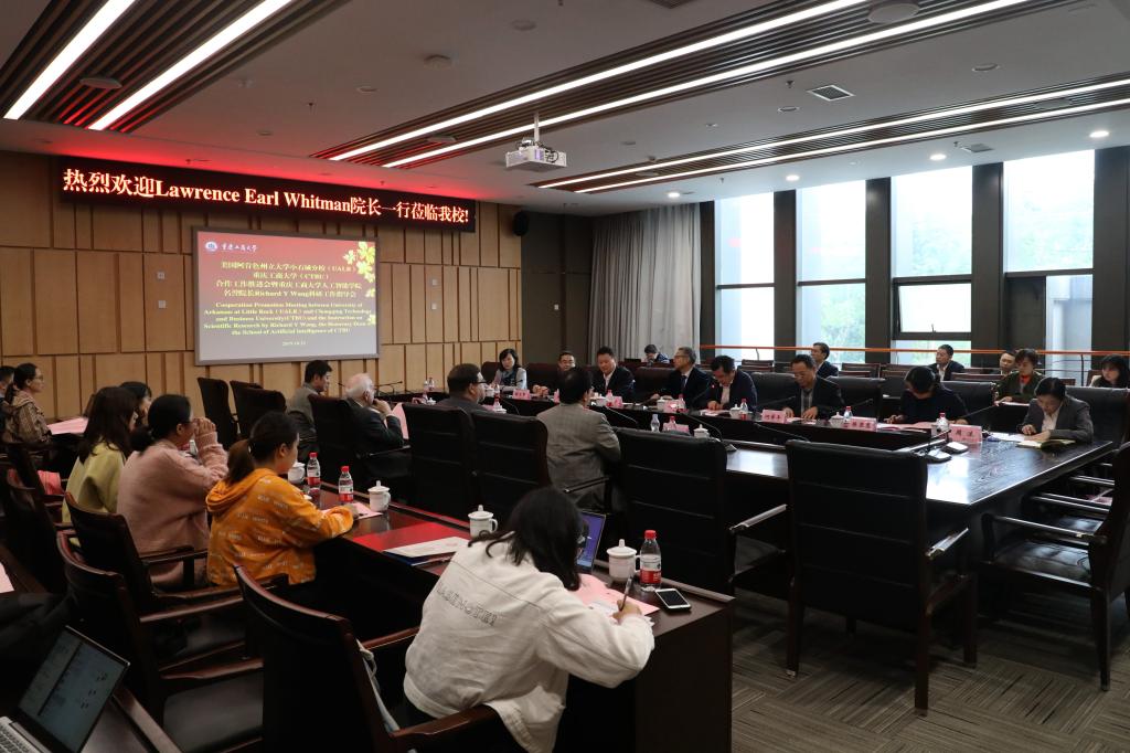 10月23日下午,pp电子与美国阿肯色州立大学小石城分校(UALR)合作工作推进会在图书馆第五会议室召开。pp电子校长孙芳城、副校长赵骅、人事处处长陈新力、计算机科学与信息工程学院(人工智能学院)与机械学院相关领域专家,UALR学校MIT斯隆学院教授王盈裕、UALR-EIT院长Pro.Lawrence Earl Whitman、UALR-EIT信息科技系主任Pro.John Randolph Talburt等参加了会议。会议由赵骅主持。