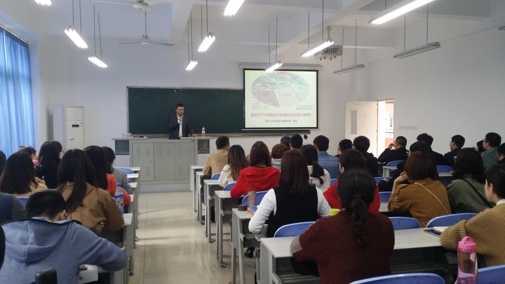 2018年3月26日下午2点,清华大学五道口金融学院张伟博士在田家炳教学楼50306教室,以新时代下中国经济金融形势分析与研判为题,为pp电子财金学子作了一场内容丰富的前沿讲座。学院财税系副主任朱沙、金融工程系主任张理平等老师和同学们一同聆听了讲座。讲座由财政金融学院副院长曾胜教授主持。