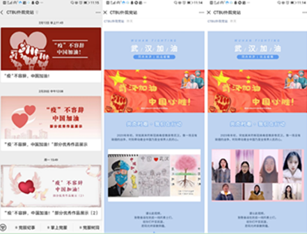 学院党员服务站组织策划了“‘疫’不容辞,中国加油”主题活动,大家通过录制短视频、主题绘画、书写加油词等能方式传递正能量,一起为武汉加油,为中国加油。