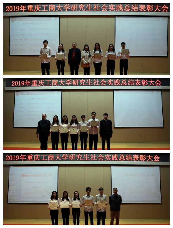 大会对优秀实践调研报告、社会实践先进个人和优秀团队代表获得者进行表彰。王燕宣读了表彰文件,廖闵萱、杜宜文、王培学、田双全、陈运超分别为优秀实践调研报告、社会实践先进个人和优秀团队代表颁奖。