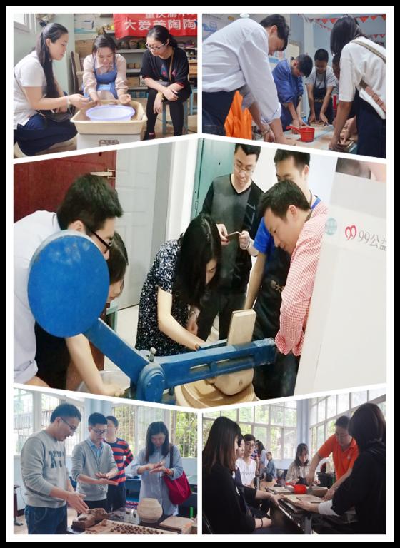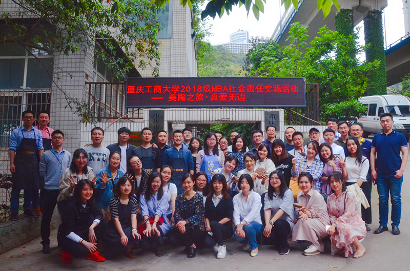 在第十二个世界自闭症日“消除误区,倡导全纳”的倡导下,为加强心智障碍人士与社会的融合度,4月12日下午,pp电子游戏平台网站MBA2018级2班的全体学员来到位于重庆市渝中区李子坝正街的重庆市残疾人文化产业示范基地(渝中区阳光职业康复园)开展慈善互助活动,与自强不息的心智障碍朋友们合作完成人生第一件自己的陶艺作品。