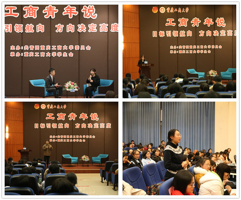 目标引领航向,方向决定高度。11月25日18:30,由校团委主办、校学生会承办的“青春作伴·砥砺前行” 首届“工商青年说”在江北校区宏智楼B509举行。活动邀请到2018年校长荣誉奖获得者吴梦,校团委(学生)副书记、文学与新闻学院研究生江蕊弘,校学生会体育部部长、会计学院学生阚卓凡作为讲述人,与200余名青年学生欢聚一堂,一起讲述青春的故事和梦想。