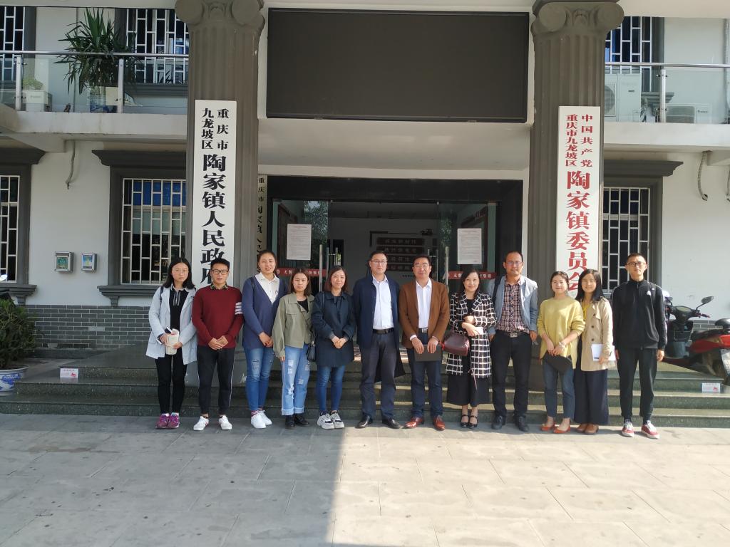 10月11日,pp电子旅游与国土资源学院党总支书记张维贵,副书记余新带队前往九龙坡区陶家镇政府,将土地规划编制纸质成果送交于陶家镇镇政府负责人手中,并进行2018年暑期大学生三下乡“服务乡村振兴”成果汇报。重庆市九龙坡区陶家镇镇长王飞、党委副书记刘敏、团委书记刘静以及九龙村党支部书记曹益热情接待。参与此次会议的还有学院专业教师王兆林、郑凌予、分团委书记胡菡以及学生代表等。