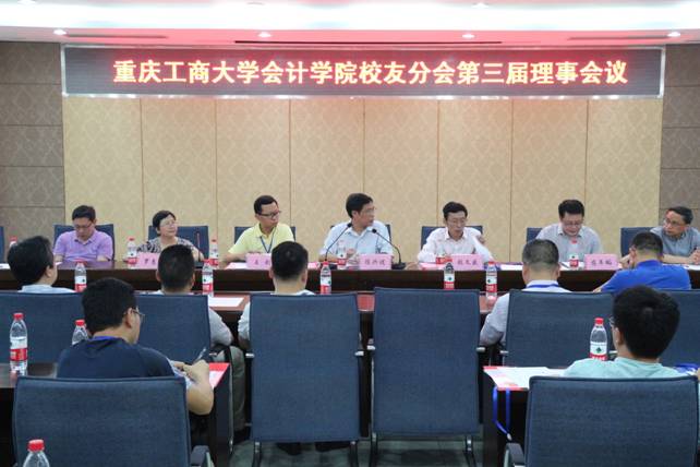 6月30日上午,pp电子游戏平台网站会计学院校友分会第三届理事会议在南岸校区厚德楼2017会议室举行。pp电子游戏平台网站副校长陈兴述,校党政办副主任、校友办主任蒋年韬,会计学院分党委书记罗惠玉,副书记尹建平,副院长周兵、程文莉,李定清教授,天府置信地产开发有限公司重庆区域中心总经理王剑,重庆物流金融服务股份有限公司总经理张文盛,以及部分教师及优秀校友代表出席了本次会议。