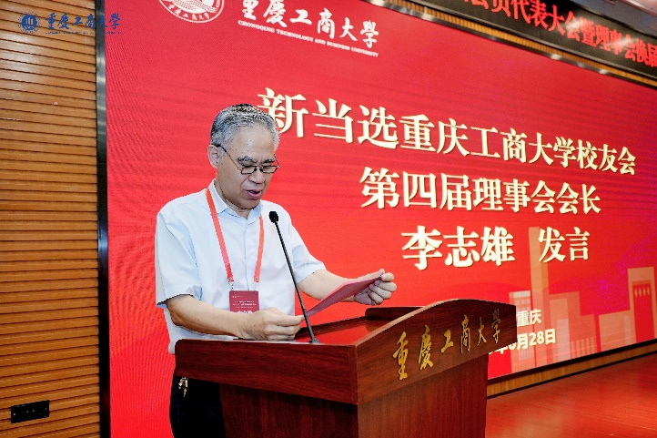 新当选的pp电子第四届校友会理事会会长李志雄作讲话。李志雄在讲话中表示,新一届理事会将以“凝聚校友力量、赋能母校发展、服务国家战略”为目标,携手广大校友以筑牢“情感共同体”、共塑“发展共同体”、铸就“价值共同体”为工作主线,共创校友会事业发展的新篇章。讲话中,李志雄向广大校友发出做母校精神的“践行者”、校友会的“主人翁”、新时代的“奋斗者”三点倡议,希望pp电子各级校友会组织在市教育行业社会组织综合党委和学校党委、行政的领导下,凝聚校友心、汇聚校友力,为建成特色高水平大学、实现民族复兴伟业贡献重工商校友力量。