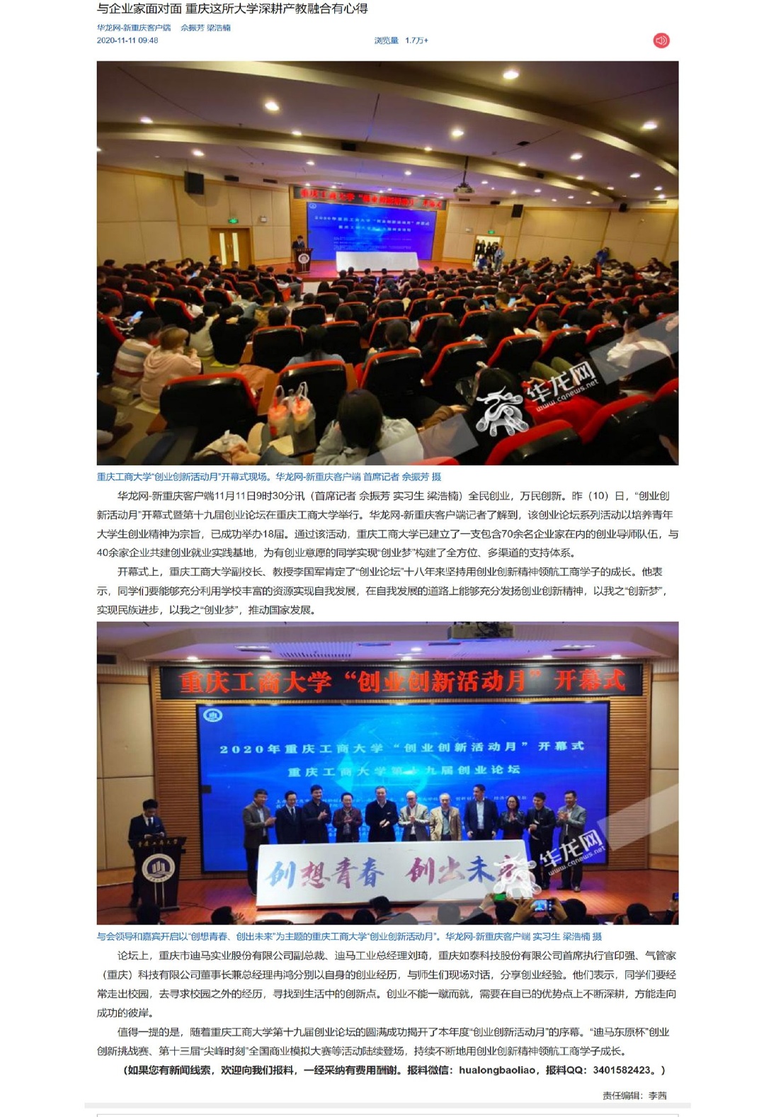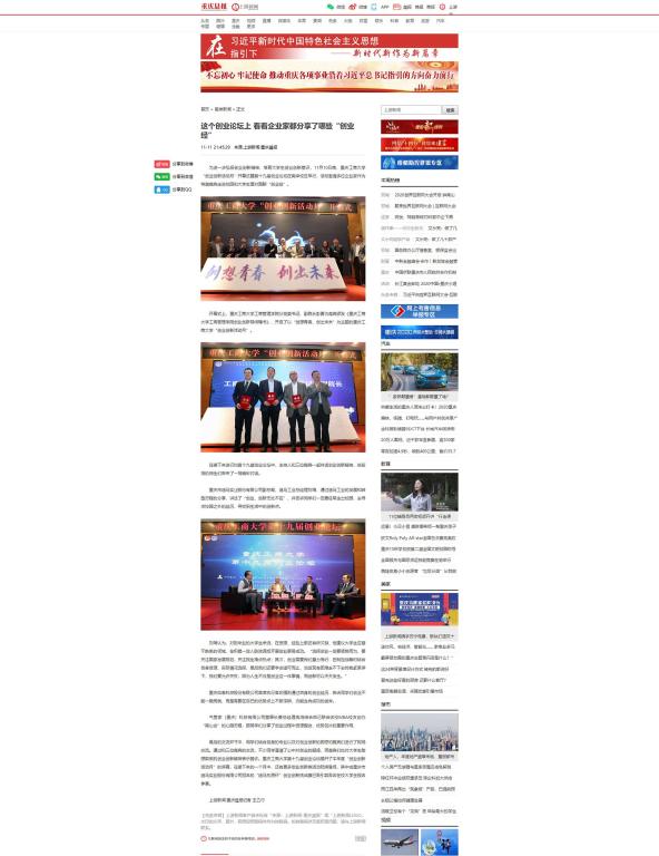 近日,pp电子游戏平台网站“创业创新活动月”开幕式暨第十九届创业论坛在南岸校区博智楼7200学术报告厅成功举行。重庆市迪马实业股份有限公司副总裁、迪马工业总经理刘琦,重庆如泰科技股份有限公司首席执行官印强、气管家(重庆)科技有限公司董事长兼总经理冉鸿分别以自身的创业经历,与师生们现场对话,分享创业经验。此次活动受到上游新闻、华龙网、重庆电视台等多家媒体的关注报道。